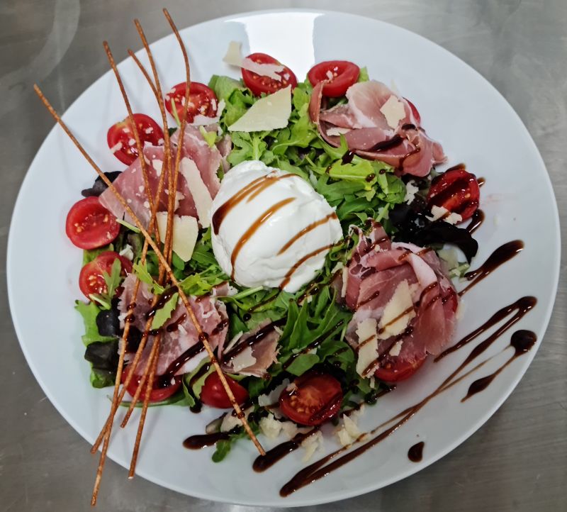 Tomates, Mozzarella Di Bufala, Jambon De Parme, Oeuf, Olives, Ail, Parmesan Et Rucola